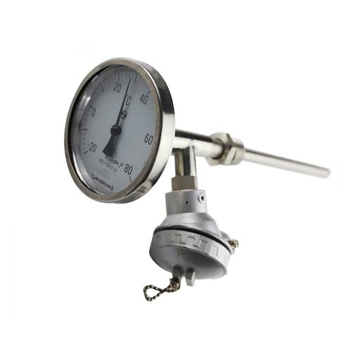 1. The application of bimetal thermometer with thermocouple/thermal resistance bimetal thermometer and thermocouple/thermal resistance in one way, not only to meet the needs of on-site temperature measurement, but also to meet the needs of long-distance transmission, can directly measure the temperature of liquid, vapor and gas medium and solid surface in the range of -80-+500 ℃ in the production process.